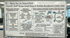 Tariffs don’t just raise costs—they re-route cashflows. They reshape suppliers, corridors, inventory positions, and working-capital cycles—often faster than financial statements can reveal. In 2026–2028, tariff risk stops behaving like a “macro factor” and starts behaving like a supply-chain system shock that hits credit quality through liquidity strain first, not defaults first. (Bank for International Settlements)