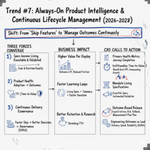 From 2026 through 2028, the most important “channel shift” in digital products won’t be mobile → web or web → super-app. It will be human navigation → agent delegation. Users will increasingly express intent in a conversational or collaboration layer—and expect the product to execute outcomes, not guide clicks. Products that don’t expose agent-callable, governed capability surfaces will be progressively bypassed by orchestration layers that can complete the job elsewhere.