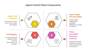 - Policy-controlled execution surfaces: agents shouldn’t get “free-form power.” They should act through controlled surfaces—approved actions, thresholds, approvals, separation of duties, and rollback—so autonomy is enforced in production, not described in documents.
