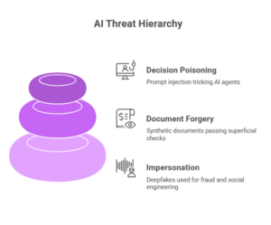 - Impersonation at scale: deepfake voice/video used for approvals, social engineering, and supplier/customer fraud.