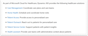Microsoft Cloud for Healthcare includes: