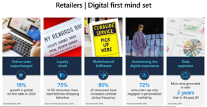 Retailers who invested in digital technology were better equipped to deal with this shift and stay connected with existing customers while attracting new ones. For example, during the pandemic, retailers accelerated their digitalization process to overcome disruptions in product supply and demand, consumer spending, etc. Microsoft Cloud for Retail (MCFR) can help the retail industry adapt and build digital resilience in the most trying of circumstances.