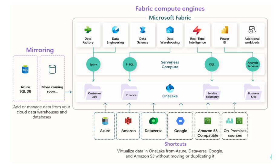 - Mirroring for Oracle and BigQuery enables near real-time data synchronization, eliminating complex ETL workflows.