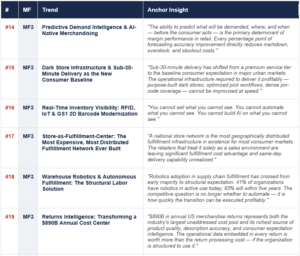 • Accelerate RFID deployment to full store coverage — item-level visibility is the prerequisite for AI demand intelligence, autonomous replenishment, and loss prevention