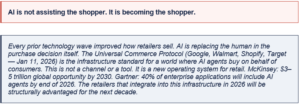 • Retailers not integrated with UCP risk invisibility to AI agents processing purchases for hundreds of millions of consumers