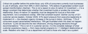 • Stop piloting generic AI. Build or license retail-specific LLMs trained on your own transaction, behavioral, and operational data