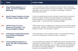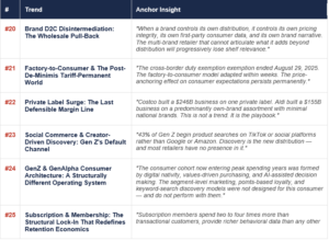 • GenZ uses AI agents to find deals and compare prices — accelerating both agentic commerce (Trend 1) and factory-to-consumer price pressure (Trend 21)