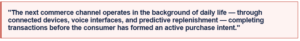 • Visual search (image-to-product), voice reordering (smart speakers, connected cars), and ambient computing are creating new purchase channels that most retailers have no presence in
