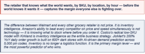 • Follow Walmart’s build/buy model: build core AI fulfilllment intelligence in-house for proprietary advantage; buy specialized robotics from partners for best-of-breed execution