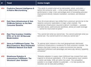 • The gap between AI-native retailers and laggards is widening at an accelerating rate — early movers are building proprietary compounding data advantages
