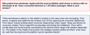 • The post-cross-border exemption, high-tariff-permanent world requires retailers to model their competitive position against localized factory-to-consumer players — Temu and Shein are building US warehouse infrastructure