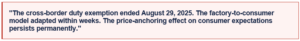 • The price-anchoring effect of Temu and Shein persists even after cross-border duty exemption — consumers have internalized the price points and will evaluate every purchase against them