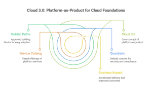 From 2026 through 2028, the cloud foundation stops being a “central team” and becomes an internal product with customers, a roadmap, and measurable outcomes. Cloud 3.0 is the point where the enterprise stops scaling tickets and starts scaling golden paths—approved building blocks that make the right way the easy way.