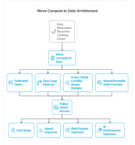 Business impact: Cost drops when unnecessary movement and duplication are engineered out, reducing egress surprises and pipeline sprawl. Speed improves because teams can access governed data without waiting for centralization projects. Risk posture improves because sovereignty and residency constraints are respected by design. AI performance improves when inference and retrieval stay close to the data that provides context.