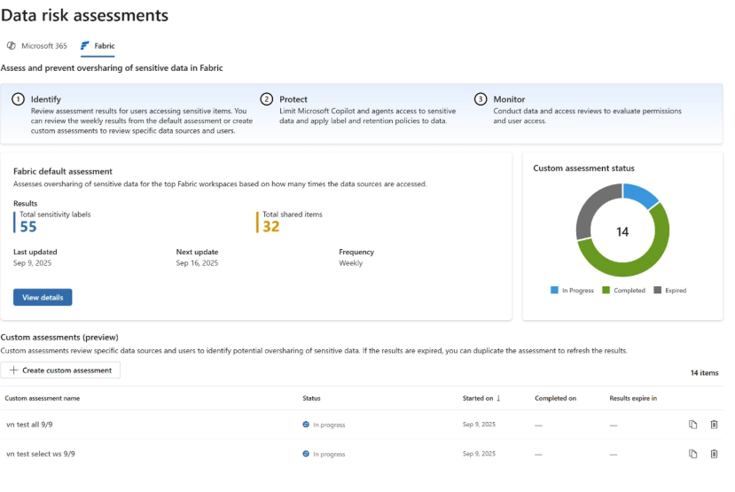 As part of Purview Data Security Posture Management (DSPM), Fabric users can now run Data Risk Assessments to identify overshared or high-risk workspaces.
